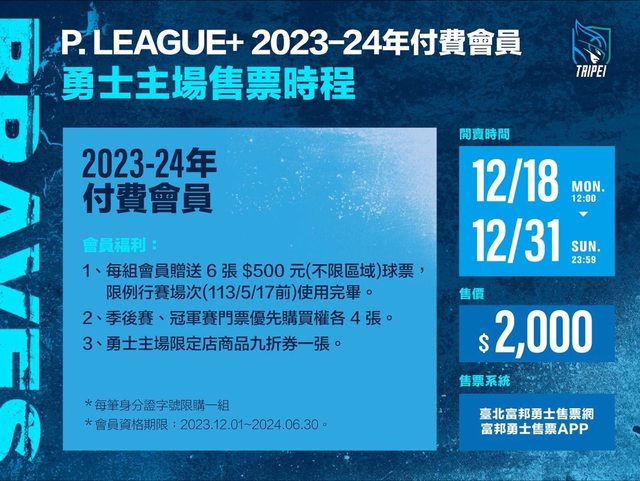【P. LEAGUE+ 2023-24年臺北富邦勇士付費會員】