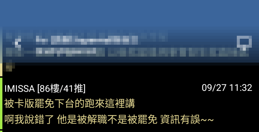 → aljust12 : 被罷免就惦惦拉 到現在還搞不清楚自己為何被趕下台 10/11 21:06