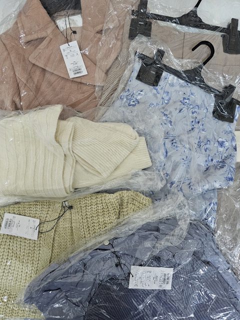 福袋共計6點入,一件長大衣 、二件上身、二件下身、一件連身洋裝,購入金額約台幣40