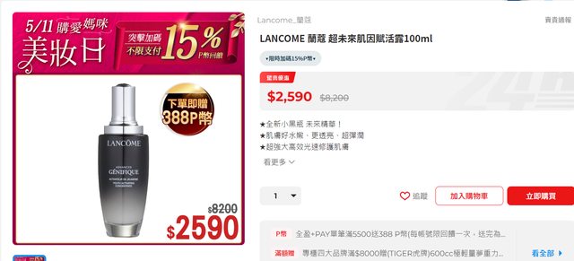 → ackes: 一樣還有15%回饋 小棕瓶99比較熱門 早被搶106.1.0.49 05/11 23:04