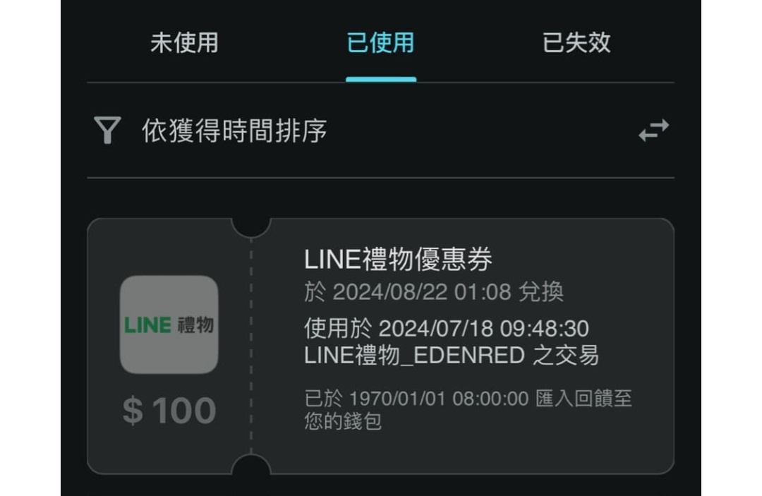 推 a910n242: 我買line禮物的,早上發券兌換了 49.217.60.7 08/20 15:33