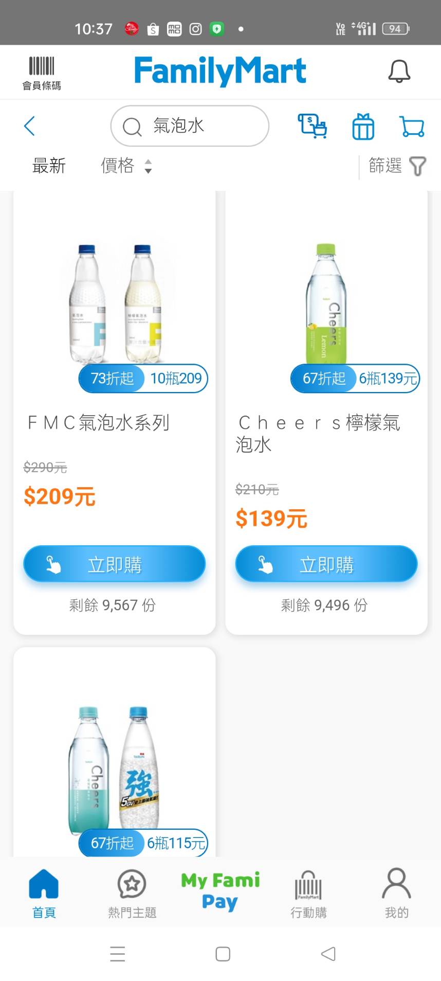 → TZUYIC: 通常限時優惠及康康五優惠當天,全家APP都101.137.233.103 08/27 12:04