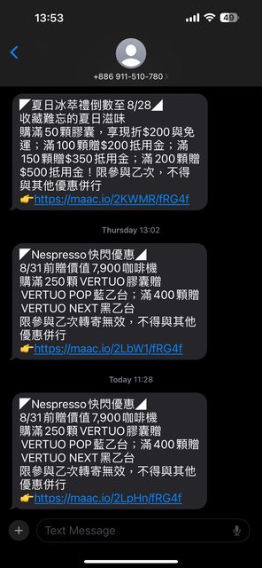 按照之前的經驗,接下來每個月應該都會傳簡訊給我了