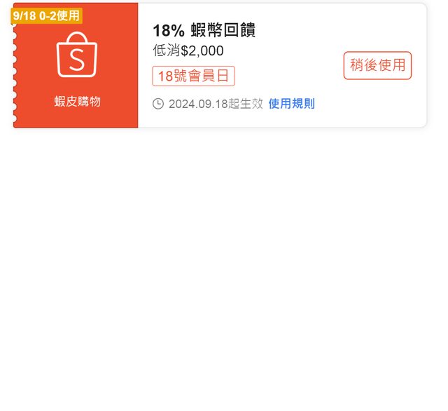 噓 Toy17: 很久以前就知道蝦皮活動的券是天選之人才有 124.6.29.73 09/09 11:37