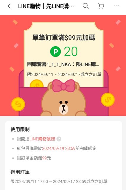 → cutejoanna: 寫可以用20的紅包,我上次也用y購全家 59.115.159.171 09/11 22:42
