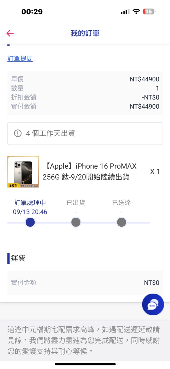 madhate: 我的今天12點到,app顯示不準218.173.160.164 09/20 13:03