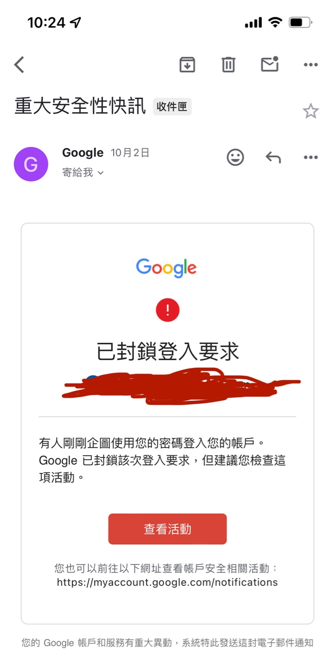 → tinlans: 這攻擊有個狠的地方是改 Google 信箱帳密 114.34.189.30 10/08 17:00