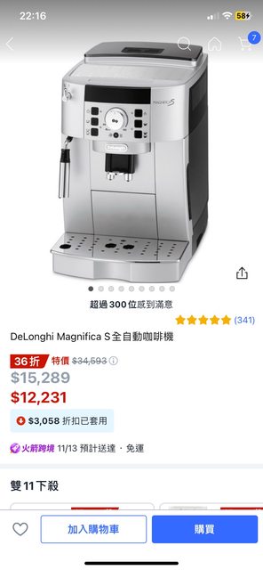標題Re: [情報] 雙11 日本樂天Delonghi 咖啡機