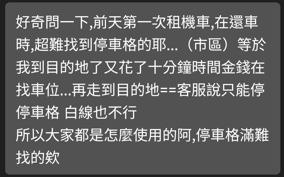 → tryit0902: 究一下哪裡有比較容易有空位的停車格220.136.195.204 11/30 03:43