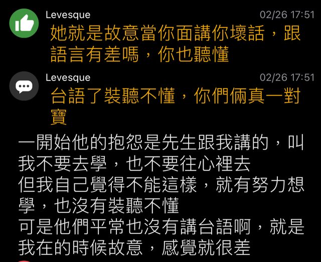 → AppleAlice : 說她壞話進而腦補原po是覺得台語low的最莫名其妙,03/01 21:18