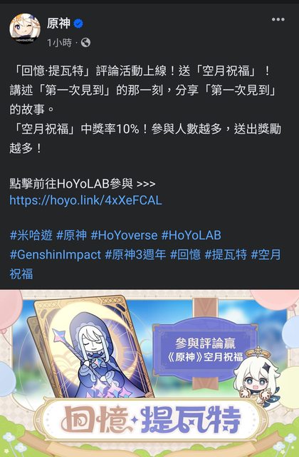 標題[原神] hoyolab留言抽10%月卡