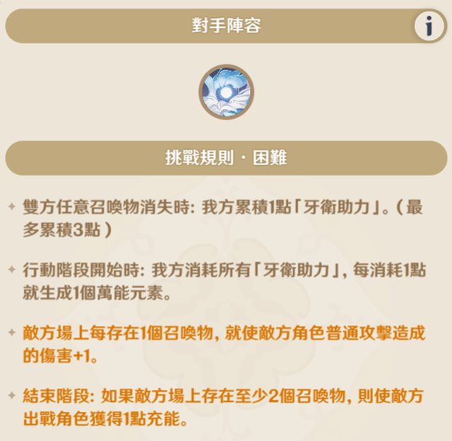 要注意的是這個敵人不會被凍結/石化,還有第三回合結束時對手三個召喚物都會消失,第四回合可以拿滿三顆萬能骰。