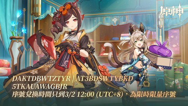 https://genshin.hoyoverse.com/zh-tw/gift?code=5TKAUAWAGBJR