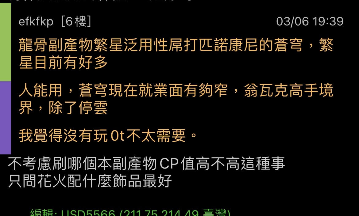 → k798976869: 真的要湊二件套就龍骨 因為翁副產物很爛 03/06 21:12