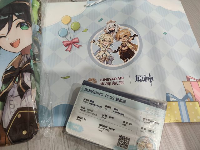 回家打開後,心情很好,是出國前訂購的吉祥航空×原神聯名的航空週邊