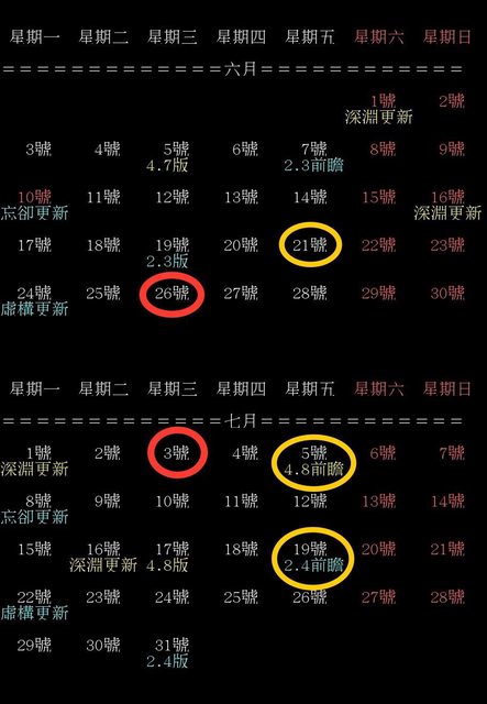 黃圈是前瞻日期;紅圈是預測絕區零公測日期