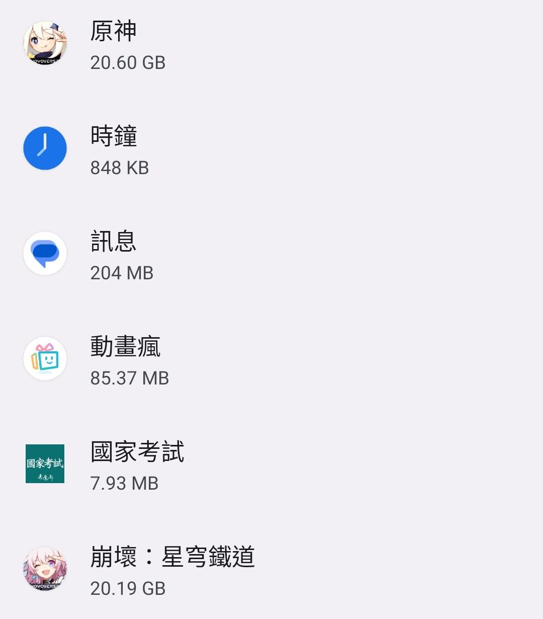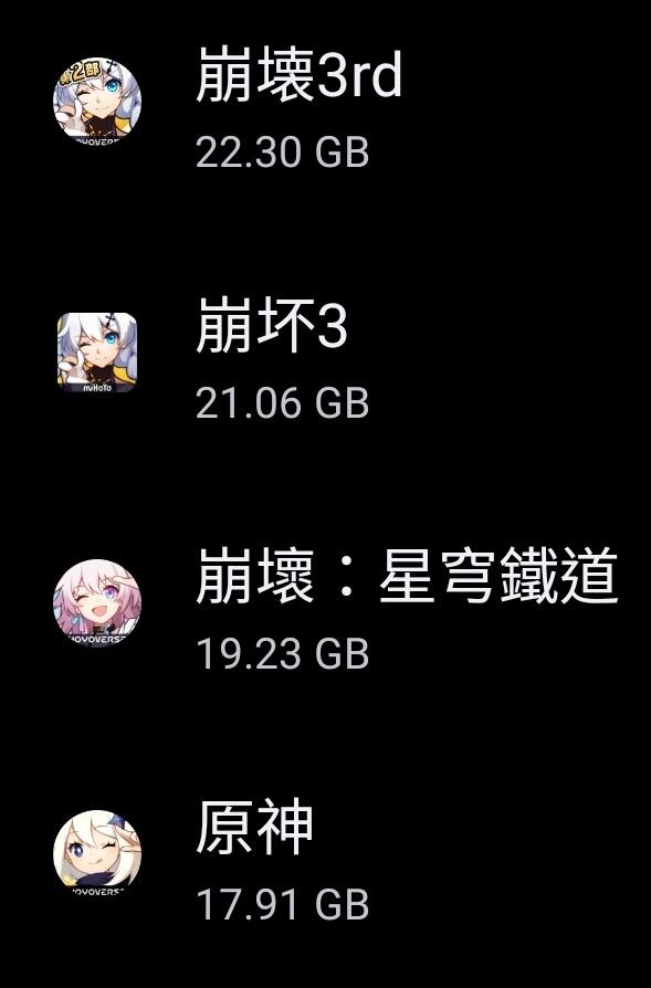 推 shinobunodok: 安卓 原神31G依然最肥 接著鐵道20G 航線早沒玩但沒 04/24 10:41