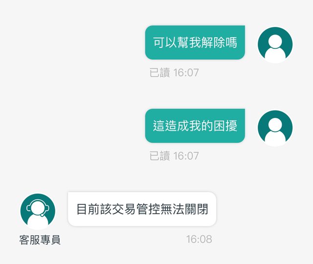 dsfrf: 笑死,客服又沒有權限,你要直接殺去銀行櫃台要求解綁啊。 06/04 21:42