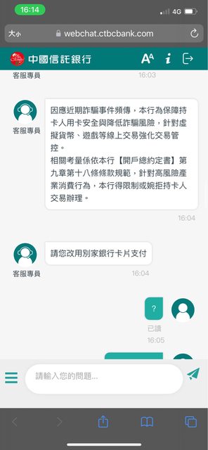 fatb: 其實中信是對的 用簽帳卡直接刷風險很高 06/04 16:31