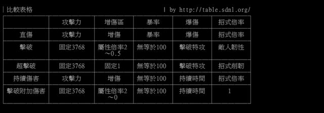 │ 超擊破 │ 固定3768 │ 固定1 │無等於100 │ 擊破特攻 │ 招式削韌 │