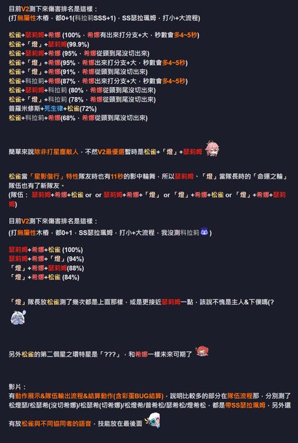 ↑好讀版 又拖到V3了,測+寫+剪好久orz 以後星之環感覺要測的隊伍愈來愈多QAQ