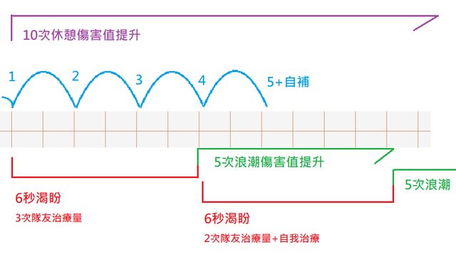累計6秒的治療量,之後提高傷害值
