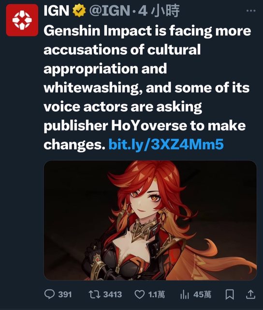 : 原神官方昨天丟出納塔角色立繪後,歐美社群對於角色膚色的不滿還是持續上升