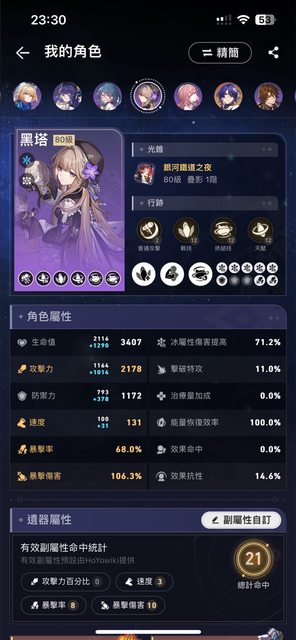 MelShina: 黑塔也是就這個詞條數感覺也不會比散搭的彩虹套強 08/15 11:41
