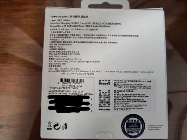 欲售物品:三星原廠45W快充組 EP-T4510X