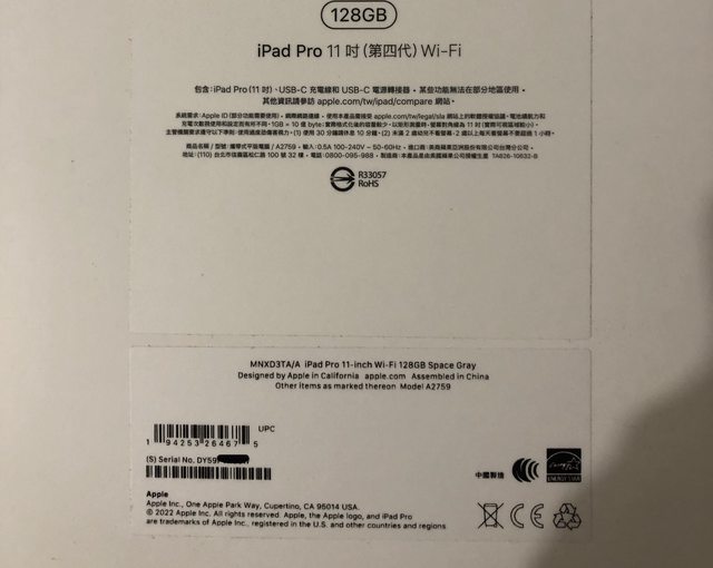 標題[賣/新北/皆可]iPad pro第四代 128g wifi太空色