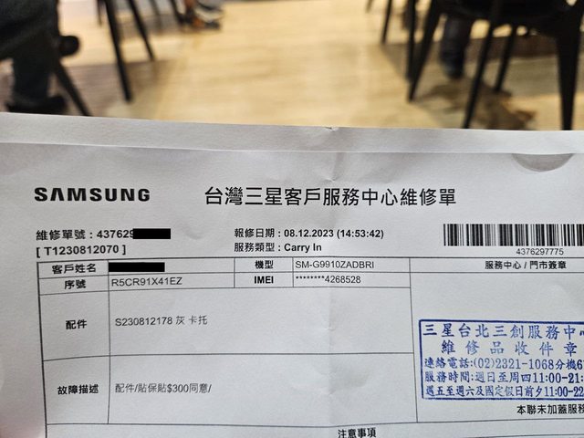 原先打算贈給親戚使用,因此 8/12 至三創三星服務中心更換保護貼