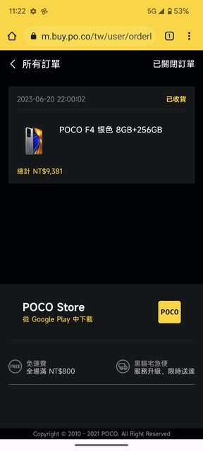 欲售物品:POCO F4 8/256g 銀 售出