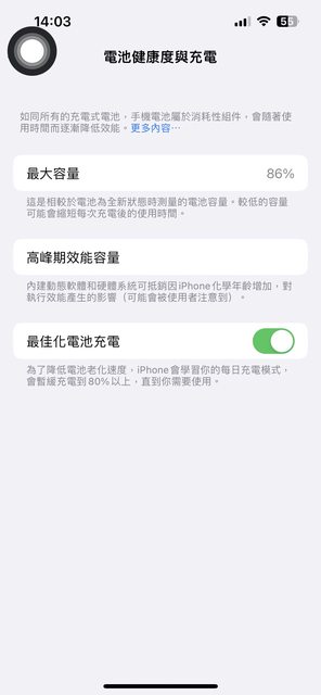 電池健康度86%