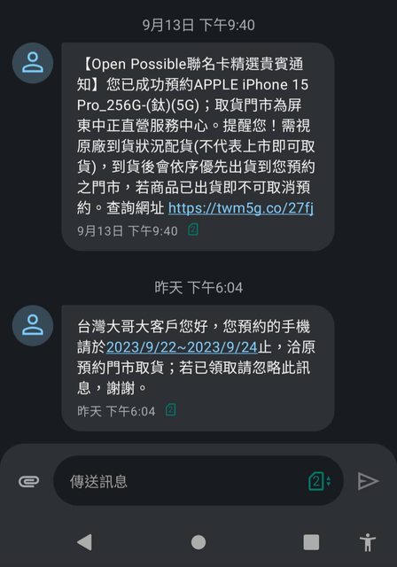 實品圖片:還沒去拿,先附確認簡訊,後補實照