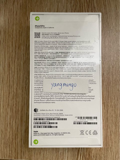 欲售物品:iphone 15 pro 256g 藍鈦金