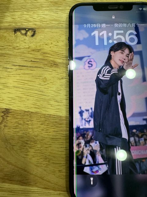 物品狀況:已過保,右上角有一小擦傷,螢幕左邊出現綠線,電池去年更換過目前健康度