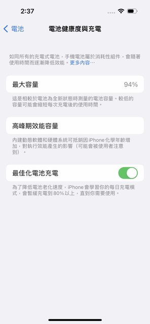 電池健康度94% 手機尚在保固內