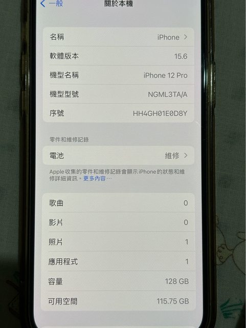 欲售物品:Iphone12 pro白色128g版本15.6
