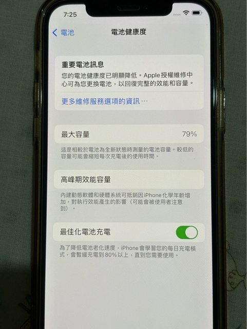 物品狀況:「功能正常」「前後無刮痕有貼保護貼」「電池健康度79 沒更換過電池」