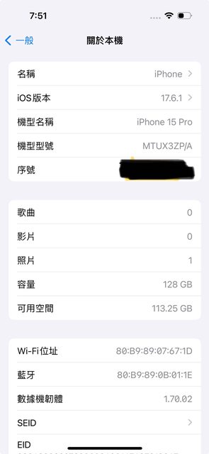 欲售物品:Apple 15Pro 128G原色鈦金屬