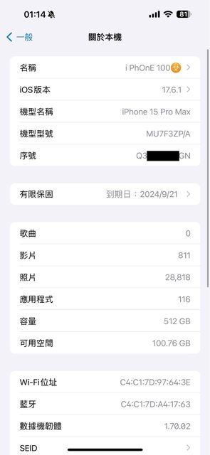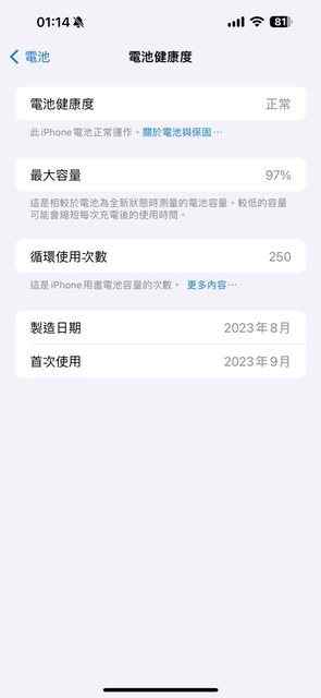 物品狀況:外觀無損,一入手即貼上保護貼及裝殼使用,電池健康度97%