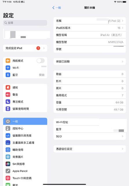 標題[賣/台北&台中/面交] iPAD Air 5 64gb wifi 藍色