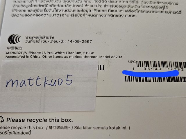 欲售物品:iPhone 16 Pro 512G 白色