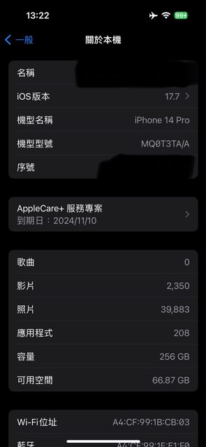 欲售物品:Apple iPhone 14 Pro 256G Black