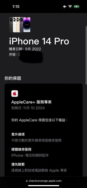 保固日期:尚在保固內2024/11/10 AC+