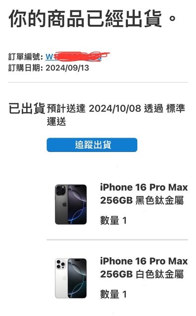 欲售物品:iPhone 16 Pro Max 256GB 黑色/白色鈦金屬 各1