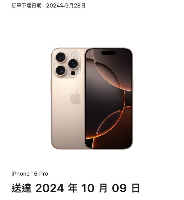 購買日期:2024/09/28於官網下單,收到通知10/9送達