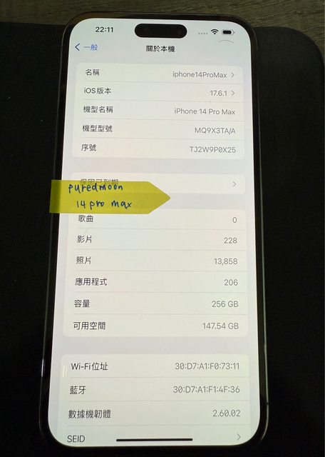 標題[賣/臺南/面交] iPhone 14 Pro max 256G 紫色
