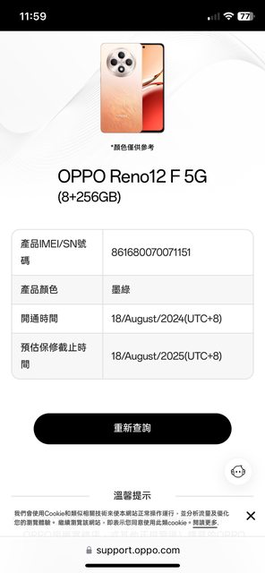 欲售物品:Oppo reno 12F 256G墨綠