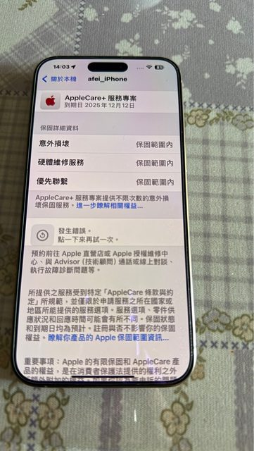 保固日期:AppleCare+到2025.12.22